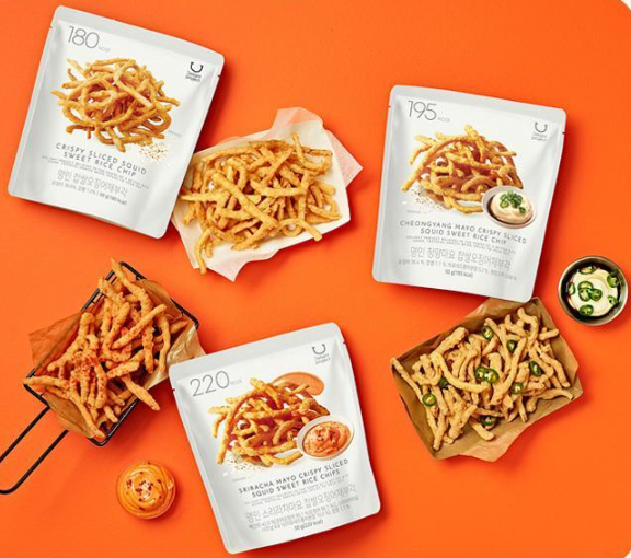 • Why it’s a must: This isn’t just a regular fried snack. It’s a traditional Korean-style “Bugak” (Glutinous rice chip). Thinly sliced squid is coated with sweet rice (glutinous rice) and fried to perfection. It’s incredibly crispy, savory, and has that high-quality traditional touch.It comes in three delicious flavors: Original, Cheongyang Mayo (Spicy Mayo), and Sriracha.